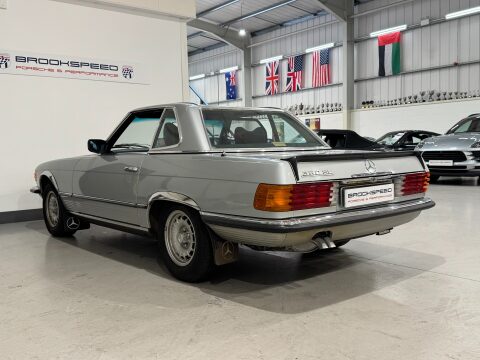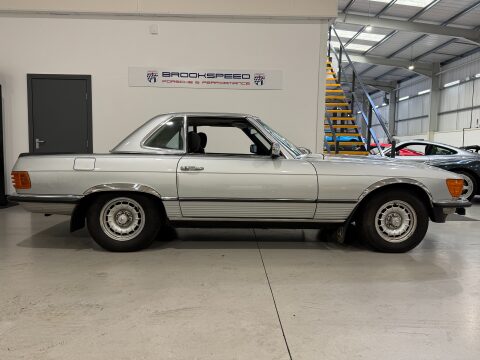 Brookspeed are delighted to offer this 1978 Mercedes-Benz 350 SL finished in the Classic Astral Silver with Black MB-Tex and Houndstooth Cloth Interior. This car also benefits from having Electric Windows, Optional Rear Seat, Wind Deflector, Original Mud Flaps, Original Sanyo Radio Cassette Player, Additional Spot L amps, Enhanced Cooling Fans, Alloy Wheels and Rubber Lip Boot Spoiler. This a one owner car having been purchased through the current owners business and then transferred into his name privately. The car has only covered an outstanding 22625 miles from new, this is a car that has to been seen! This car is located at our Chandlers Ford Showroom SO53 1JH 02382 511115: Please visit our website to view other vehicle stock, service facilities and events. www.brookspeed.com